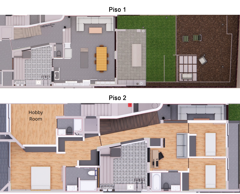 Una de las características más destacadas de nuestro proyecto es la incorporación de dos hobby rooms asignables con entrada independiente en el segundo nivel, con una superficie de 17,3 m², que brindan un espacio adicional para el desarrollo de actividades personales o profesionales.