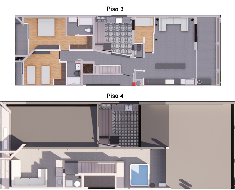 Dos penthouses con una superficie de 108,85 m², complementados por un rooftop de 38,29 m² y bodega en el primer piso.
